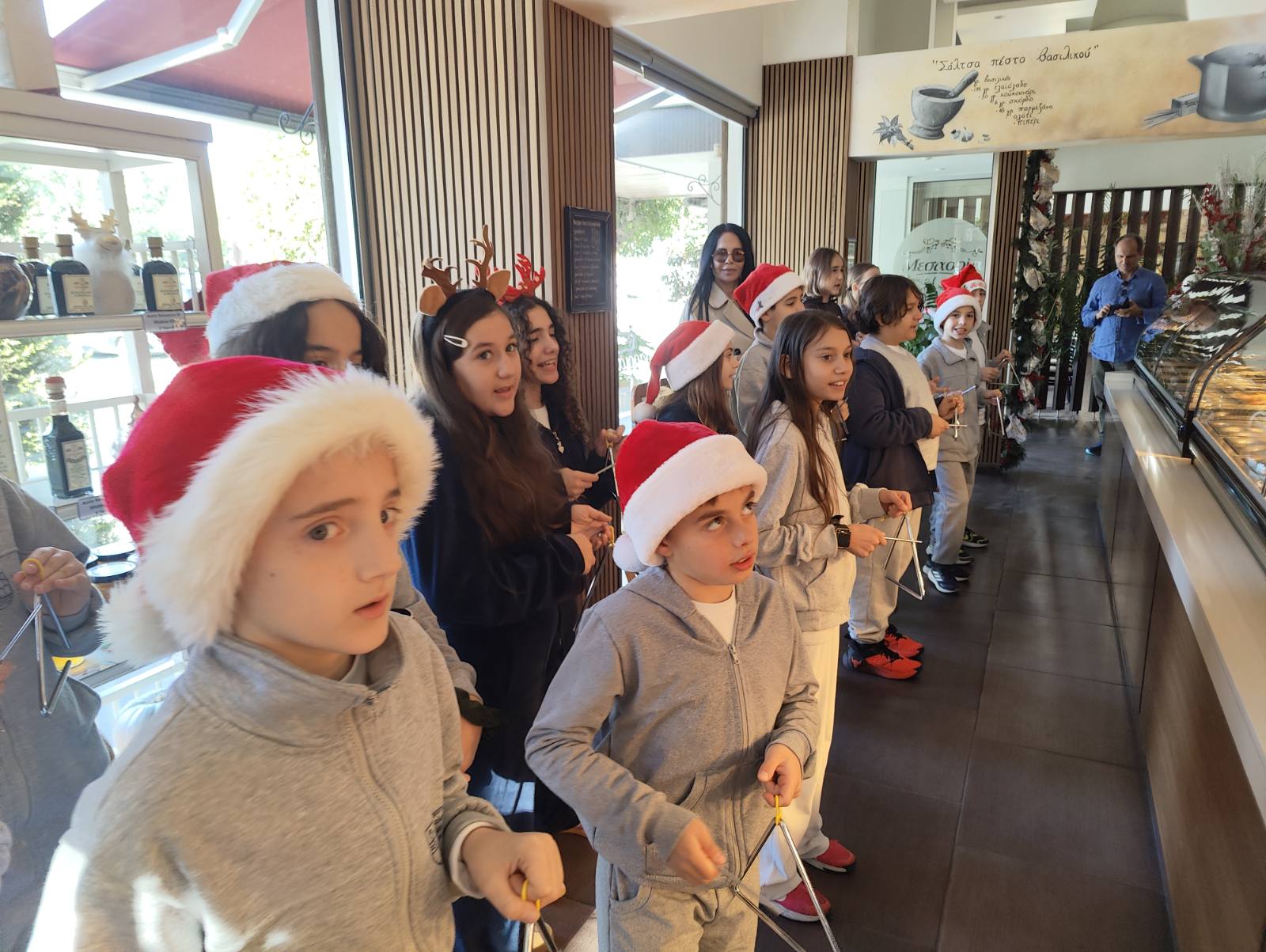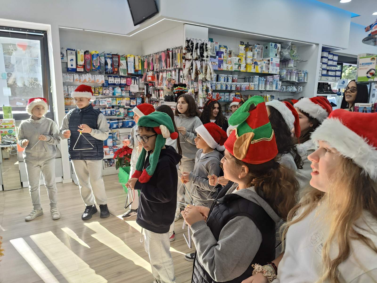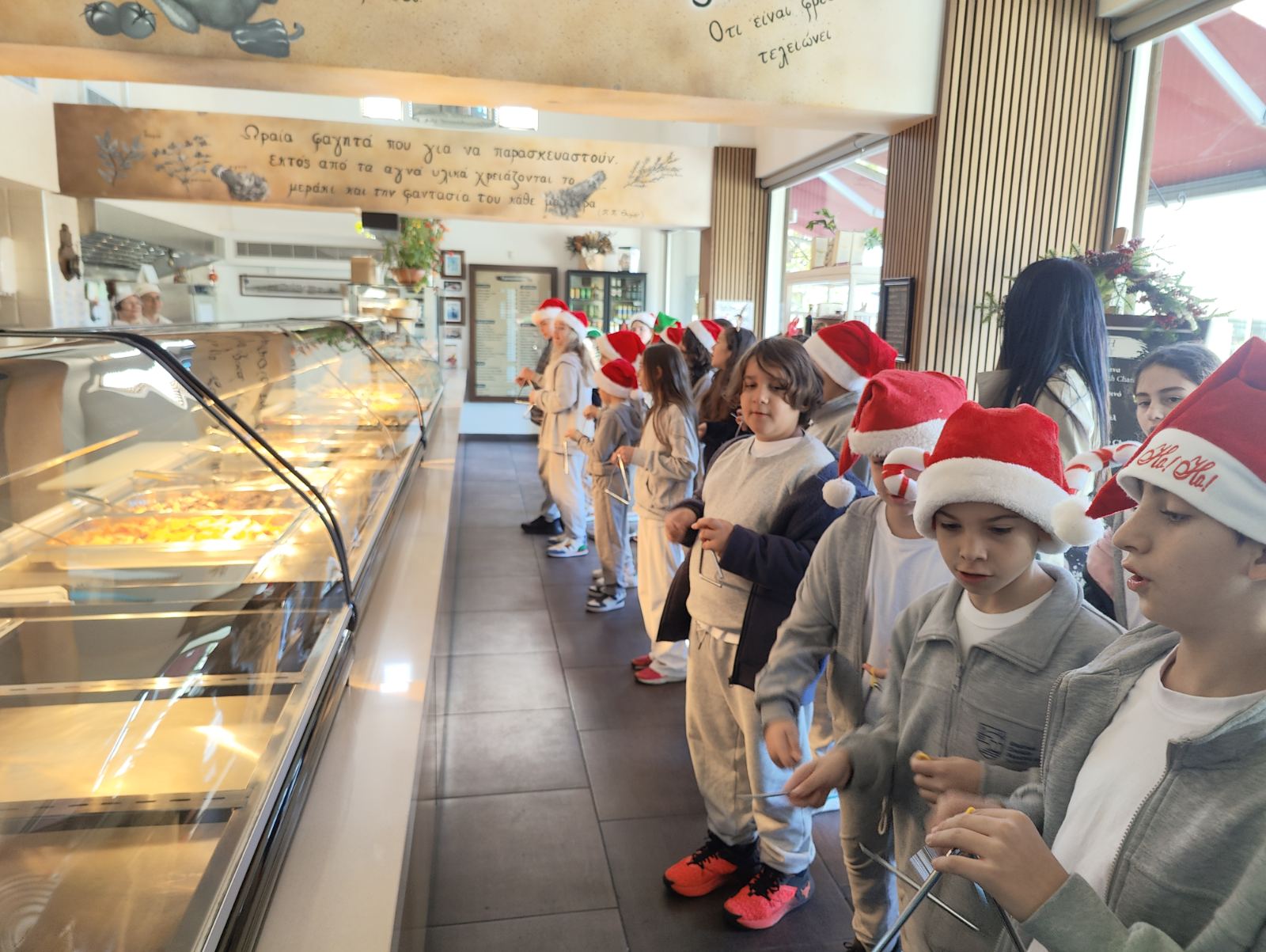 Την Τρίτη, 16/12, μέσα στα πλαίσια των χριστουγεννιατικων δραστηριοτητων, οι μαθητές/ριες του Ε 1 υπό την καθοδήγηση της μουσικού κας Θεανώς και την εποπτεία του κ Θεοδώρου είπαν τα Κάλαντα των Χριστουγέννων στην γύρω περιοχή του Σχολείου.